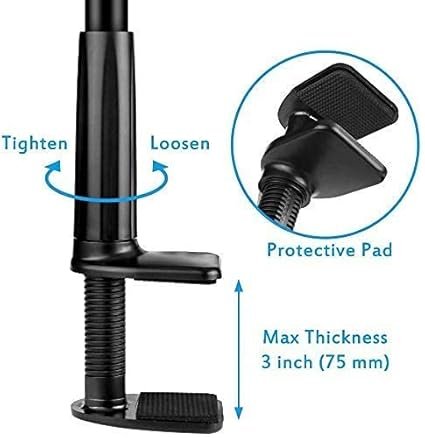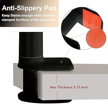 - Comes with positioning screw lock structure in the bottom, clip expand maximum 7.5cm. It is compatible with most tables and desks of different thicknesses. And the silicone on the grip can prevent the harm from scratching